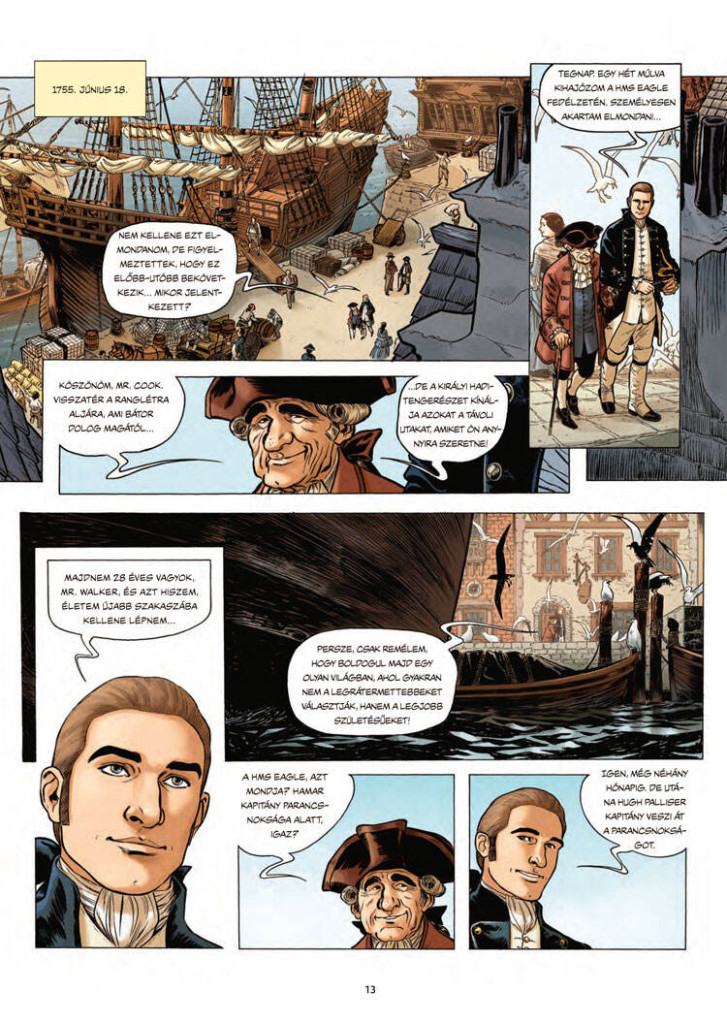 Két további hajóút következett, amelyek megszilárdították Cook hírnevét a tengeri expedíciók úttörőjeként, valamint az ismeretlen világok felfedezőjeként és kiváló térképkészítőként is, nem utolsó sorban pedig ezek az utazások formálták a világról alkotott véleményét és nézeteit. A képregény első kötete James Cook lenyűgöző világába kalauzolja el az olvasót. Egy olyan férfi életét ismerhetik meg, akinek bátorsága és fáradhatatlan munkája új ismereteket hozott az emberiség számára a Föld felderítetlen részeiről. Tartsanak vele kalandos útján, és fedezzék fel a történetet, amely tengerészek és tudósok további generációit inspirálta.