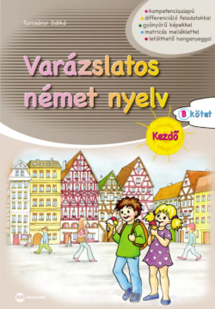 A Varázslatos német nyelv című sorozat kompetenciaalapú, differenciáló, játékos feladatokkal nyújt segítséget a német nyelv elsajátításához 6-8 éves tanulóknak. A kötet fejleszti a tanulók nyelvi készségeit, és egyszerűen alkalmazható alapszókincset hoz létre. A gyerekek életkorának megfelelő, játékos, változatos feladataival, ábráival hozzájárul a tanulási kedv felkeltéséhez és fenntartásához. Gyakorlatai jól szolgálják a gyerekek fejlesztését, általuk formálódik, gazdagodik tudásuk. A kiadvány egyes feladataihoz matricákat mellékeltünk, amelyeket a helyes megoldások esetén kapnak a tanulók. Érdemes tehát hibátlanul dolgozni, összegyűjteni valamennyit, mert a megszerzett matricák egy nagy meglepetés részei lesznek. A letölthető hanganyag biztosítja a kötet szavainak elsajátítását, hallás utáni megértését. A kötet feladatainak megoldásai és a hanganyag kiadónk honlapján (www.maximkiado.hu) érhetőek el. A feladatok alkalmasak az iskolai tananyag elmélyítésére, kiegészítésére és a biztos nyelvi készség kialakítására az iskolában és otthon egyaránt.